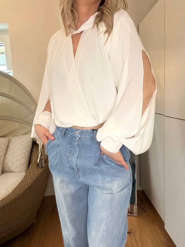 Tolle Bluse mit Gummizug unten am Bund!Hingucker sind die tollen geschnittenen Ärmel!