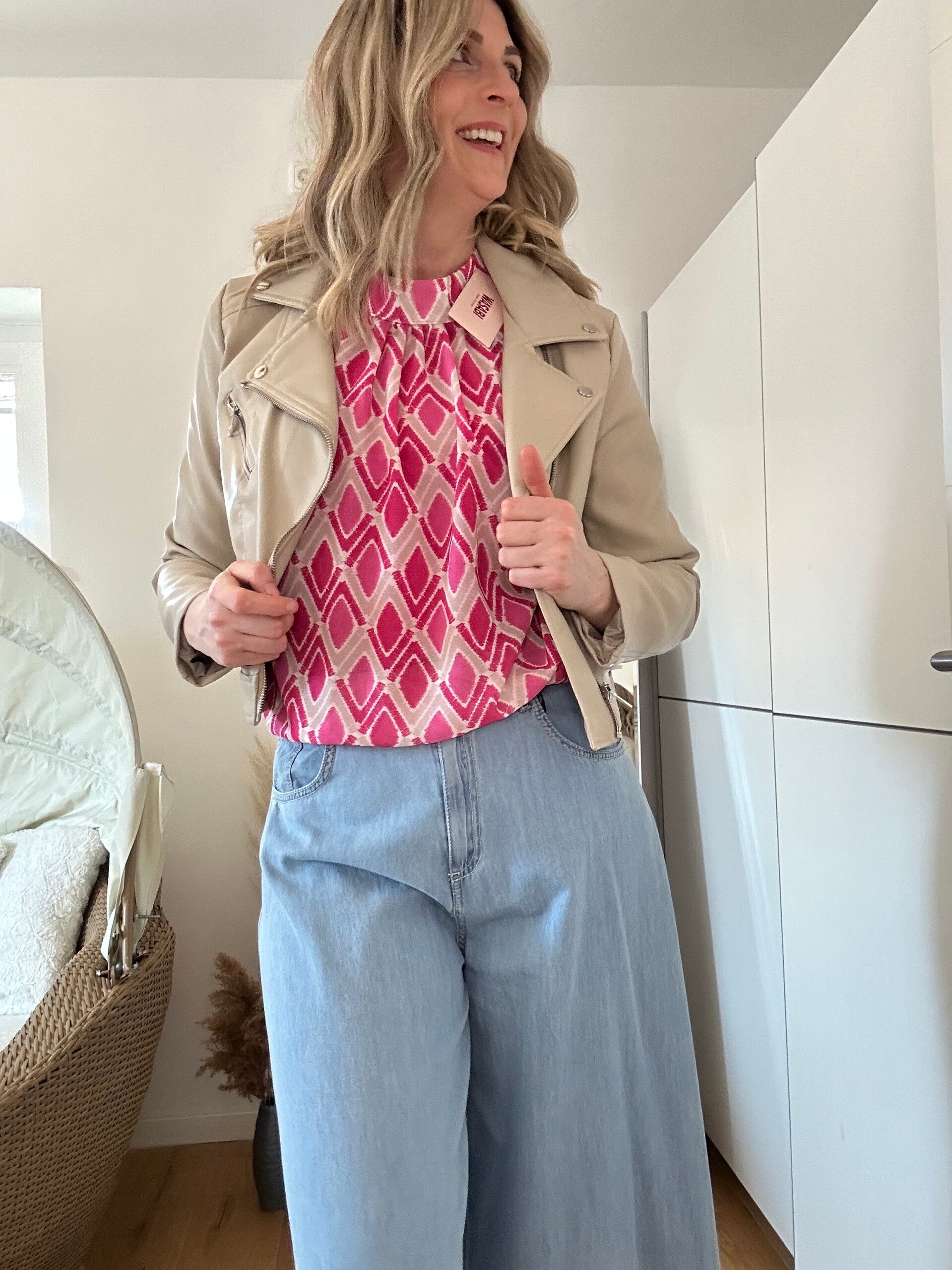 Weich fließende Bluse mit Gummizug am Bund und Ärmel
