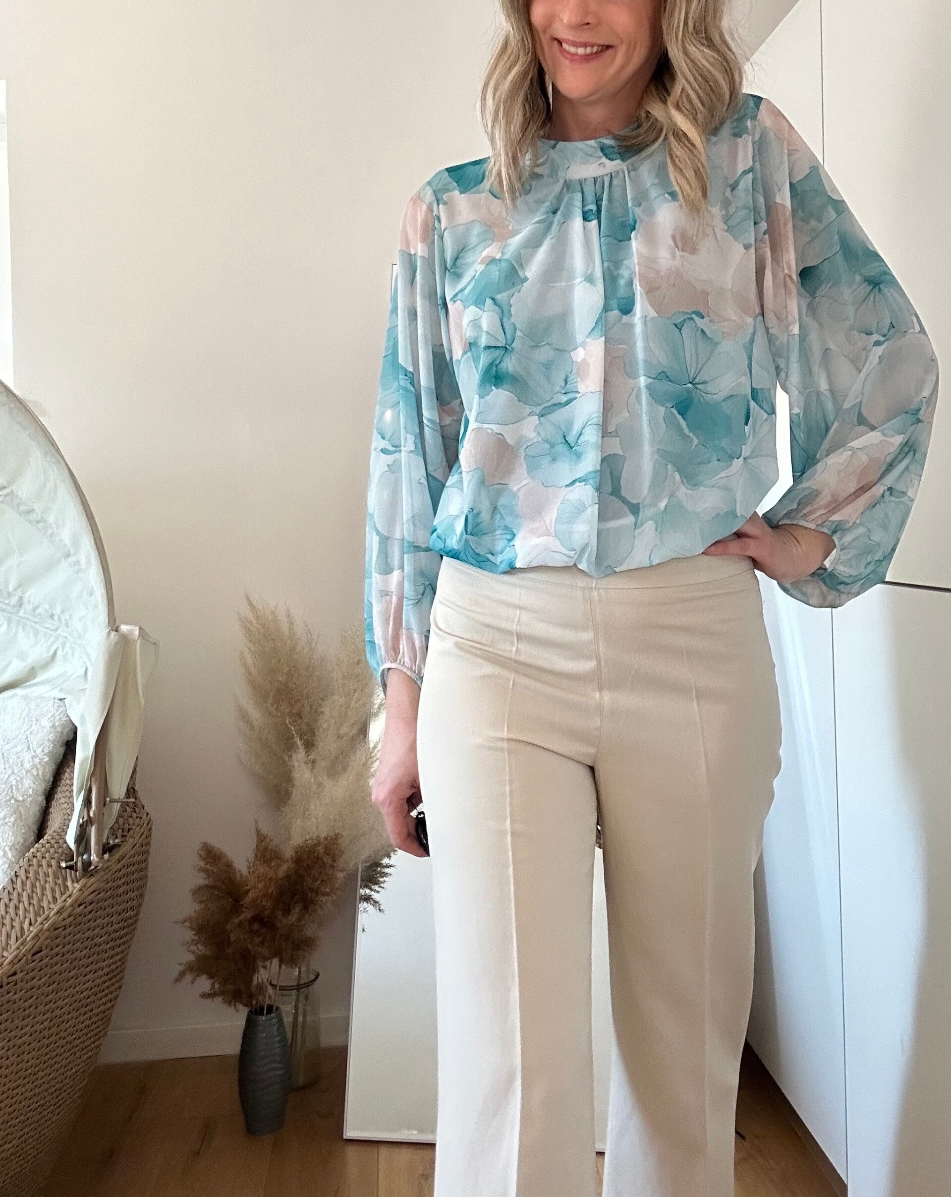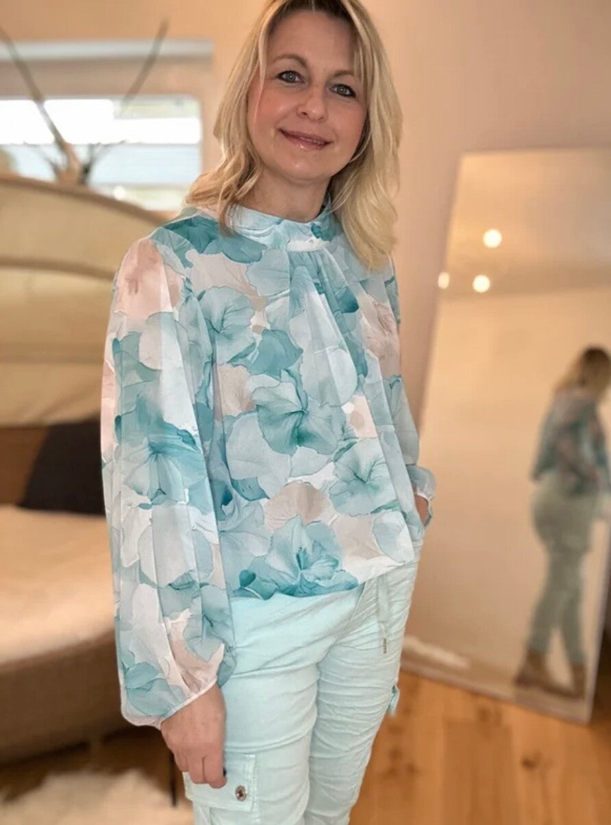 Schön weich fließende Bluse mit Gummizug am Bund und Ärmel