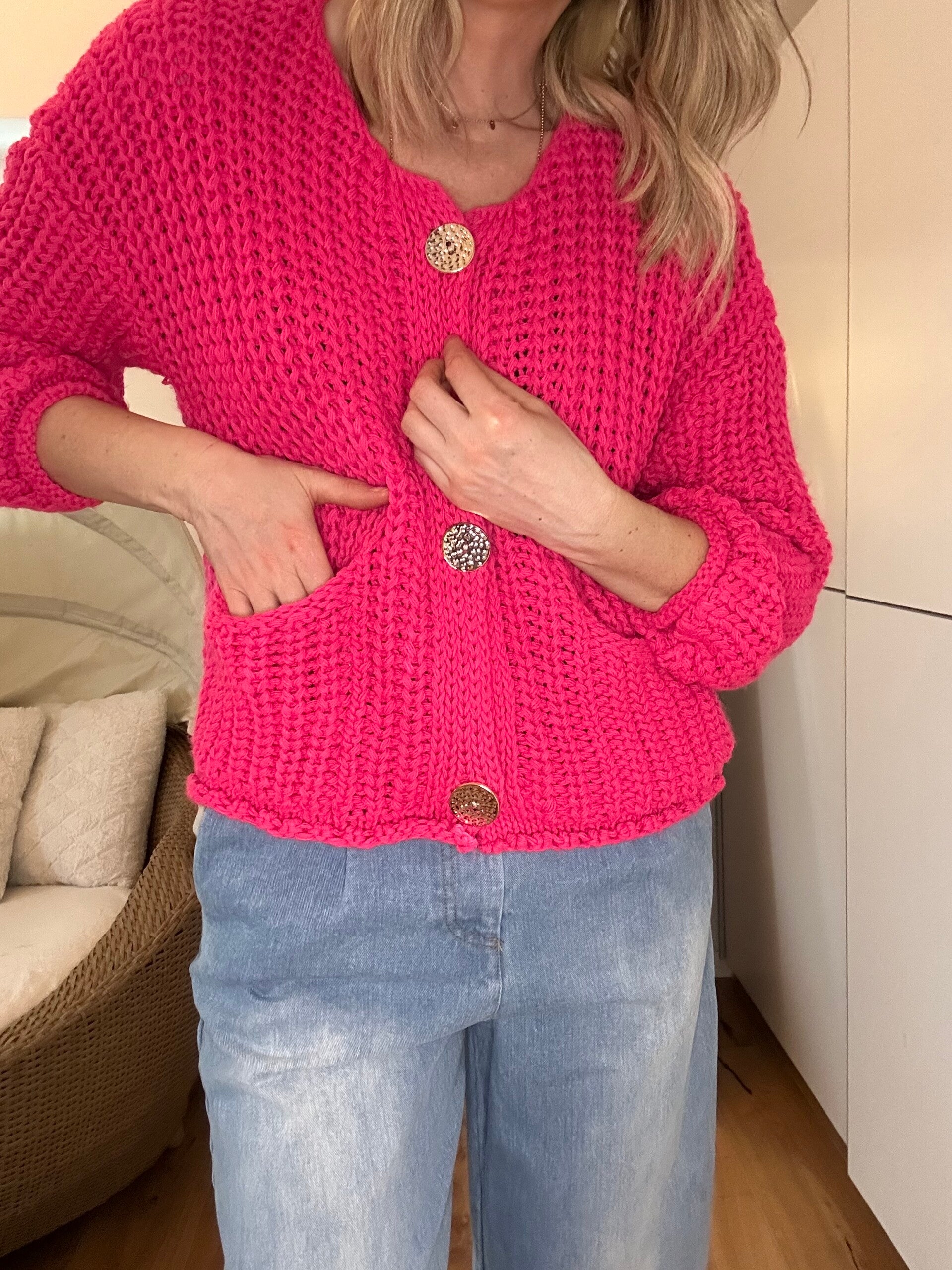 Tolle weit geschnittene Grobstrickjacke mit schönen, großen, goldenen Knöpfen