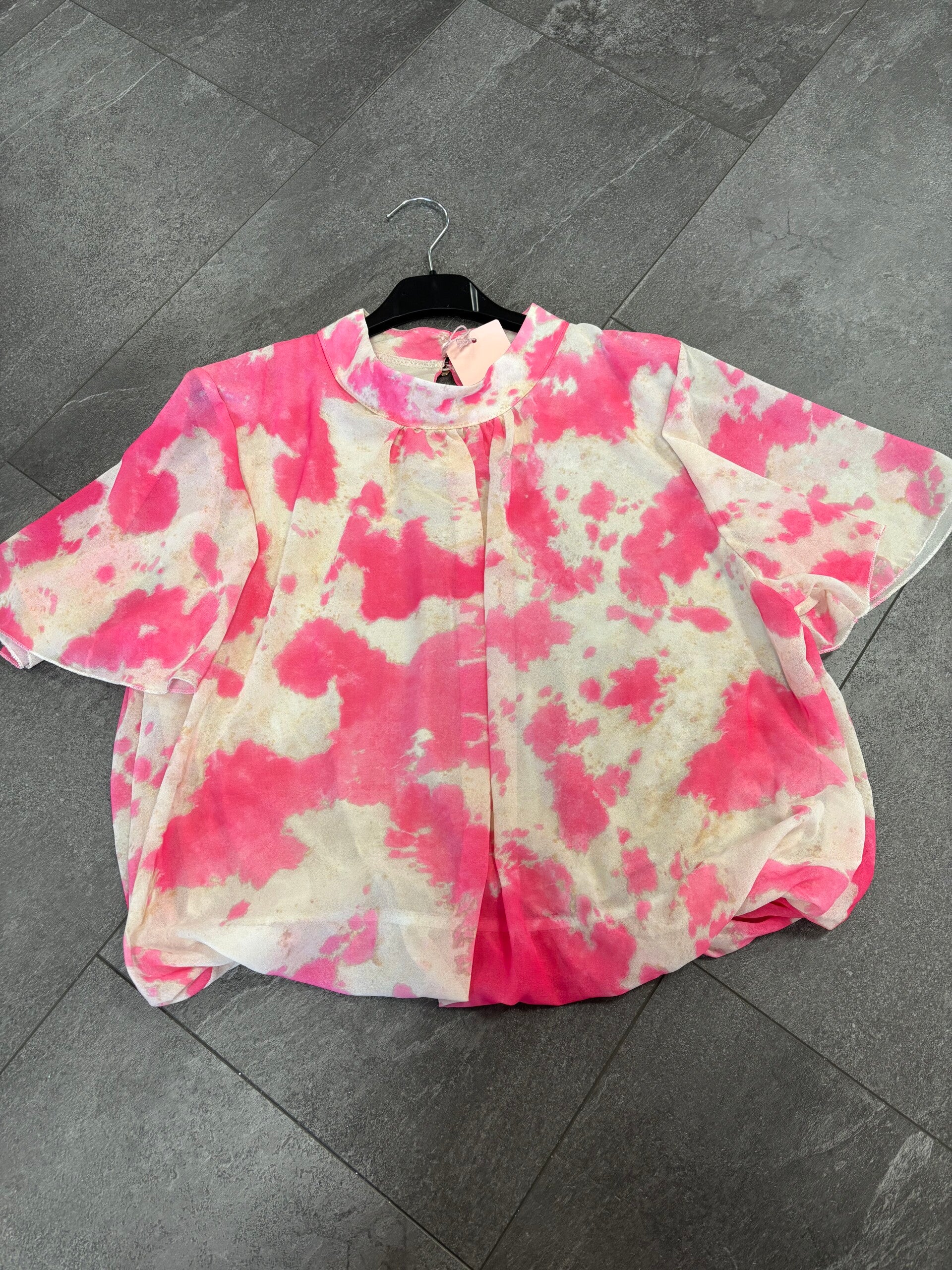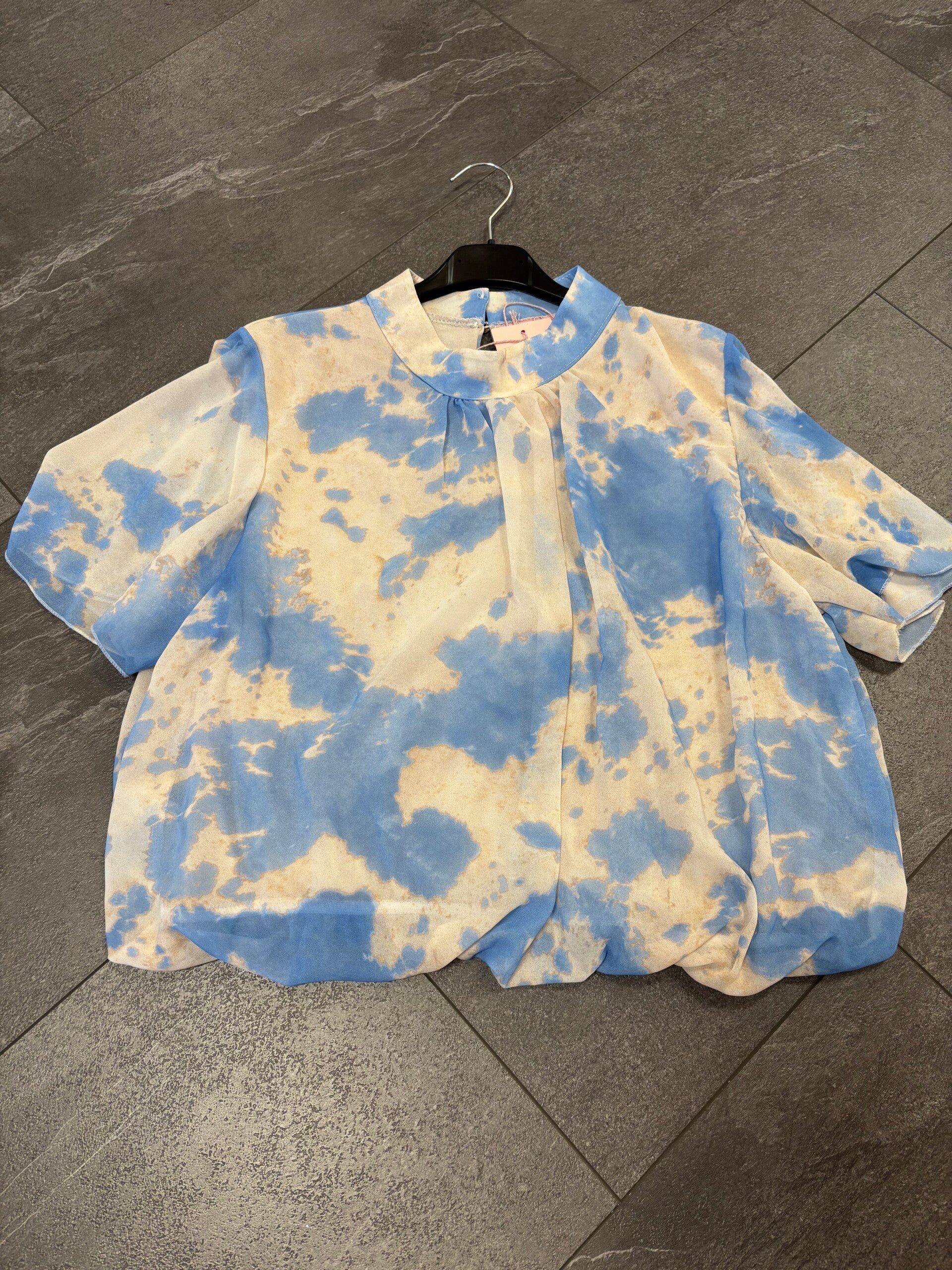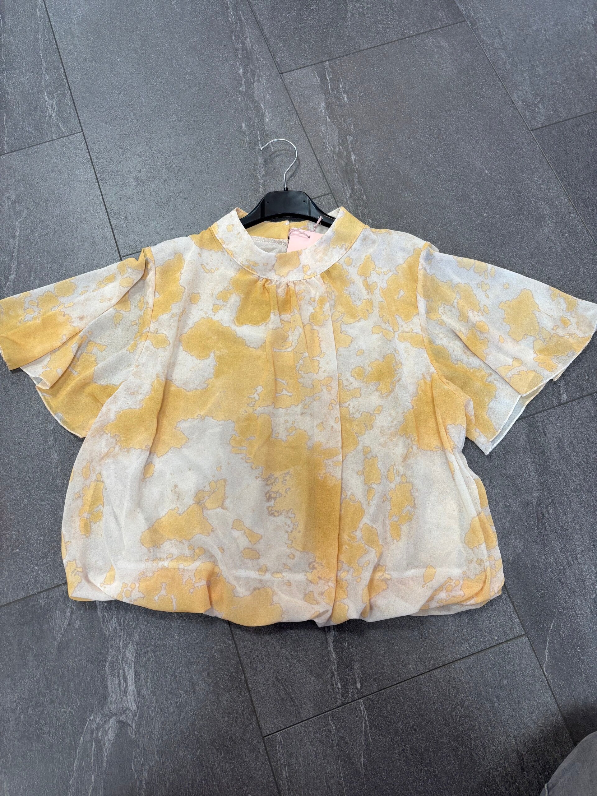 Tolle Bluse mit kurzen Ärmeln und unten am Bund mit Gummizug!